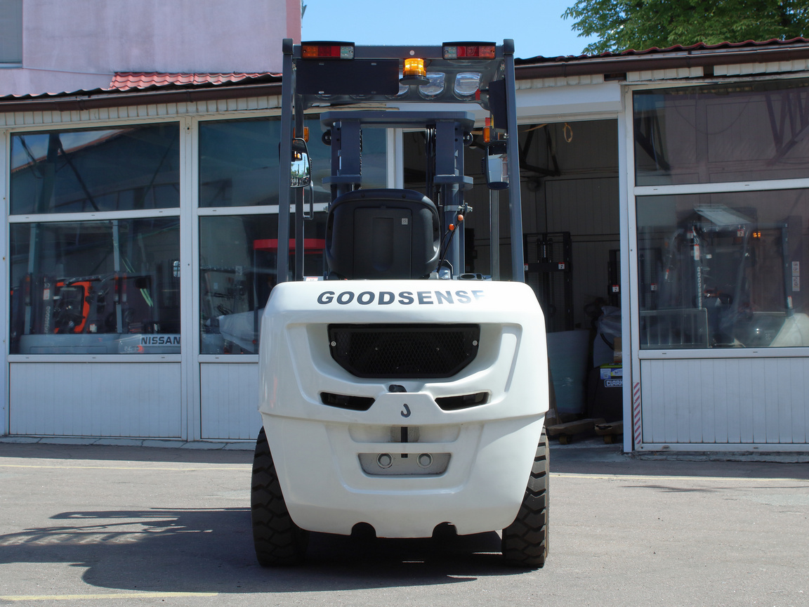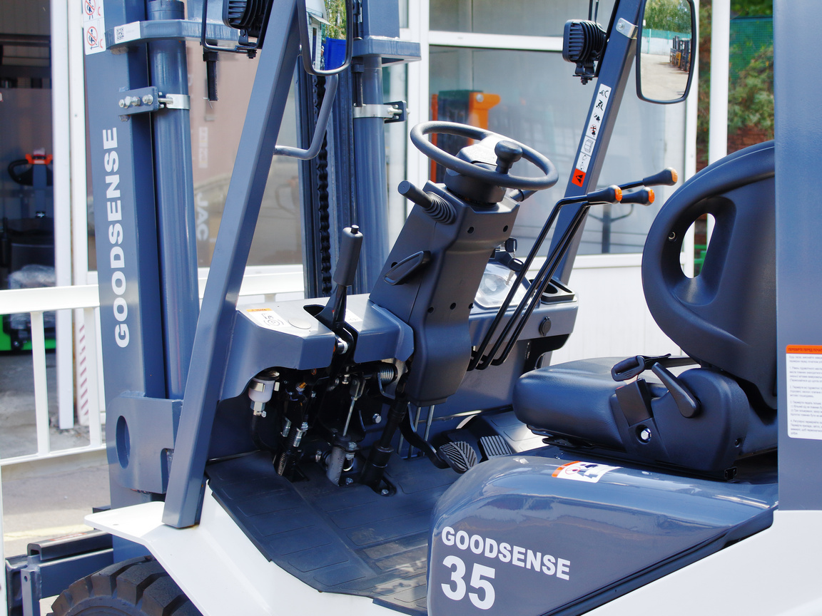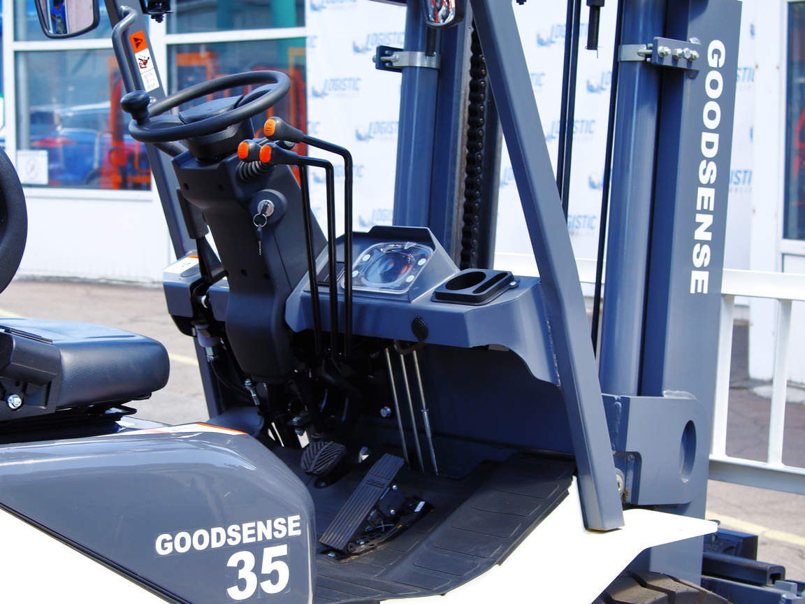 Firma Goodsense zadbała również o komfort operatora – mata dźwiękochłonna w kabinie i opony pneumatyczne zapewnią płynną jazdę i łatwość obsługi. Twoje bezpieczeństwo jest naszym priorytetem, dlatego wózki FB30H/FB35H są wyposażone we wszystkie niezbędne urządzenia oświetleniowe, zapewniające bezpieczną pracę.